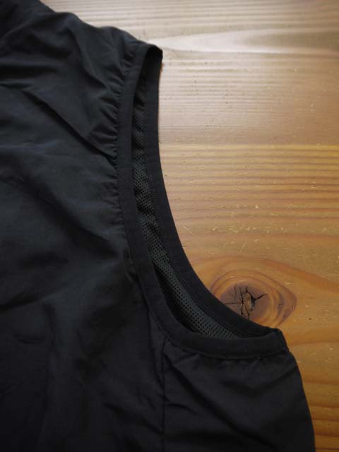 マットでドライな質感のリップストップ生地を使用した軽量のナイロンベスト。