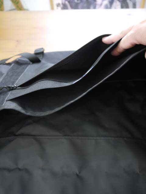 3つのビッグポケットで荷物を整理でき底面ストラップで容量調整も可能。