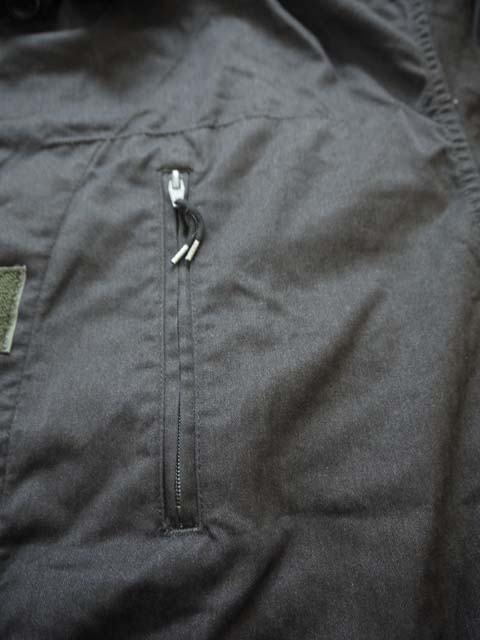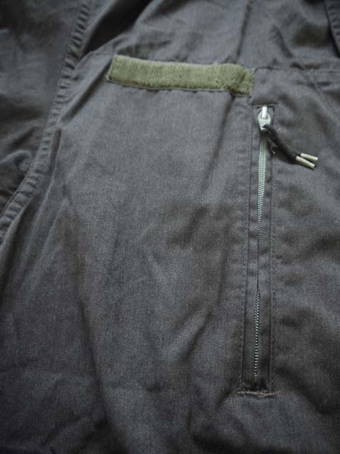 フランス軍を代表する非常に人気のF-1ジャケット(ブラック染め)。その中でも特に見つけるのが困難な、両サイドのポケットが無く、胸に縦型のファスナーポケットのみが配置されたフロントデザインのF-1ジャケットです。