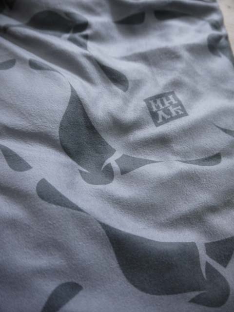 袖裏にはフリース生地を切り替えMHAK氏のテキスタイルをプリント。