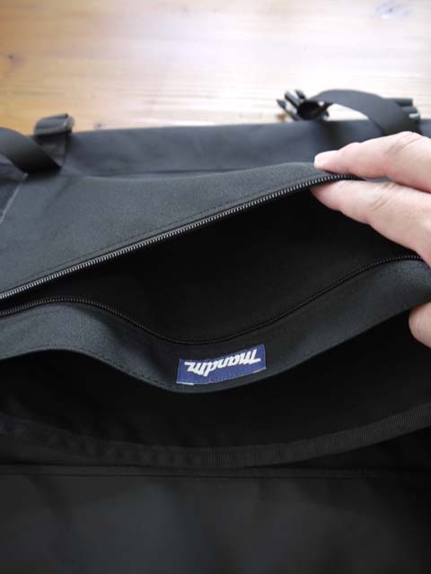 3つのビッグポケットで荷物を整理でき底面ストラップで容量調整も可能。