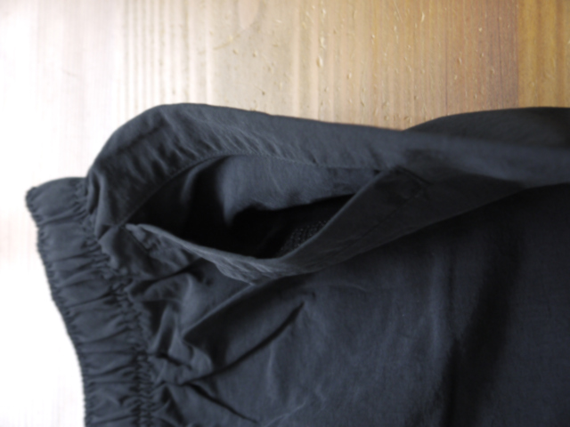 ボディはしわ加工が入った薄手で一重のバルーンシルエット