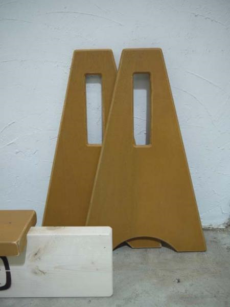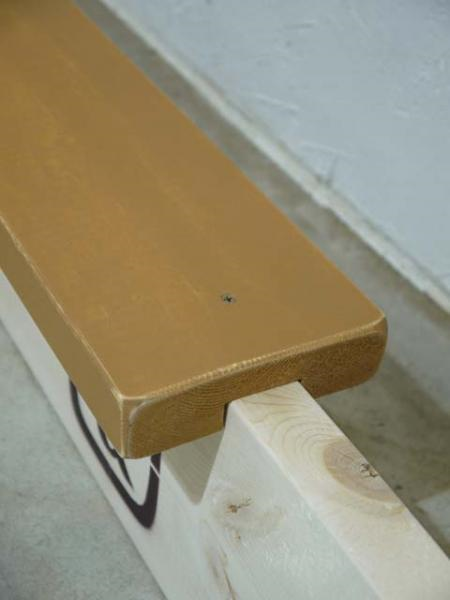 3ピースベンチの座面あり足塗装・焼印4角ロゴとなります。